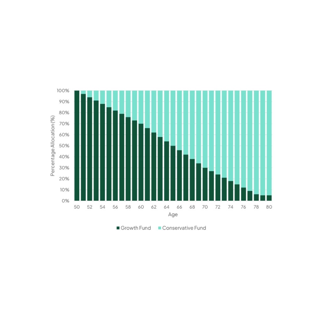 A set-and-forget retirement savings strategy that automatically reduces risk after age 51.